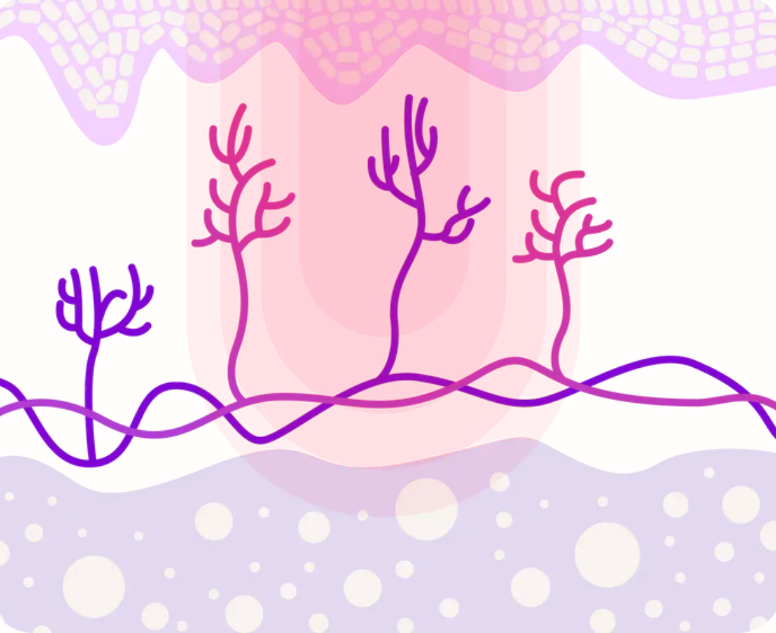 Rood licht (630nm) stimuleert collageen en elastine, wat fijne lijntjes vermindert en de huidtextuur verbetert.